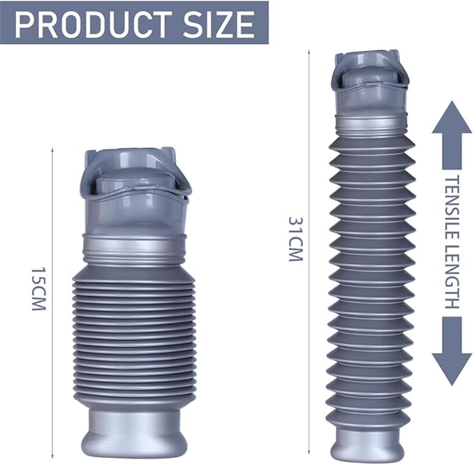 - Shrinkable Design: This urine bottle with shrinkable design saves space and make it easy to carry. The length of pee bottle can be extended up to 24CM.