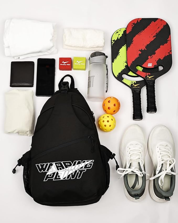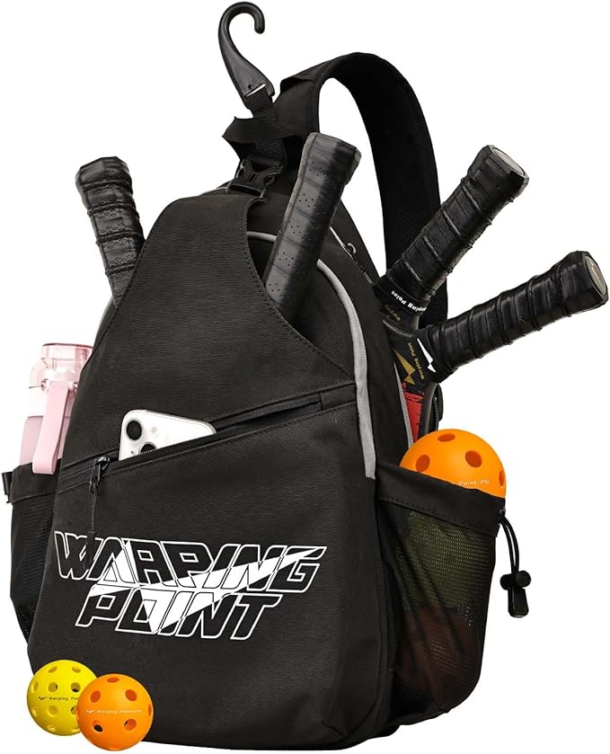 Warping Point Pickleball Bag, Adjustable Large Capacity Pickleball Crossbody Backpack for Women Men, Sling Padel Bag Hold 2 to 4 Paddles with Multiple Compartments, Wet & Safety Pocket Fence Hook