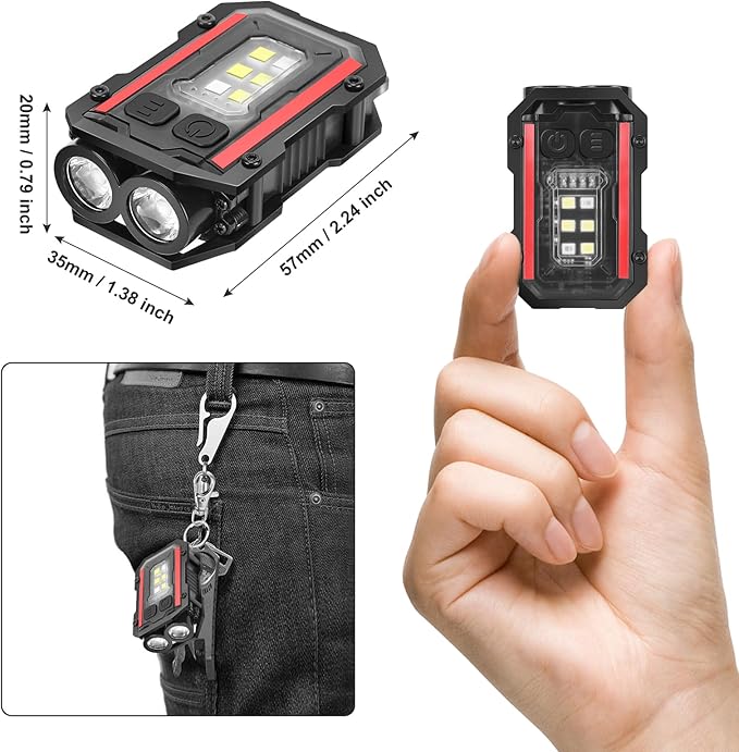 - Magnetic and Clip: Keychain Flash Light equipped with clip and magnet; The clip can be attached to hats, clothing and bag straps; The magnet attaches to metal surfaces, convenient when repair or work needs to be done at night