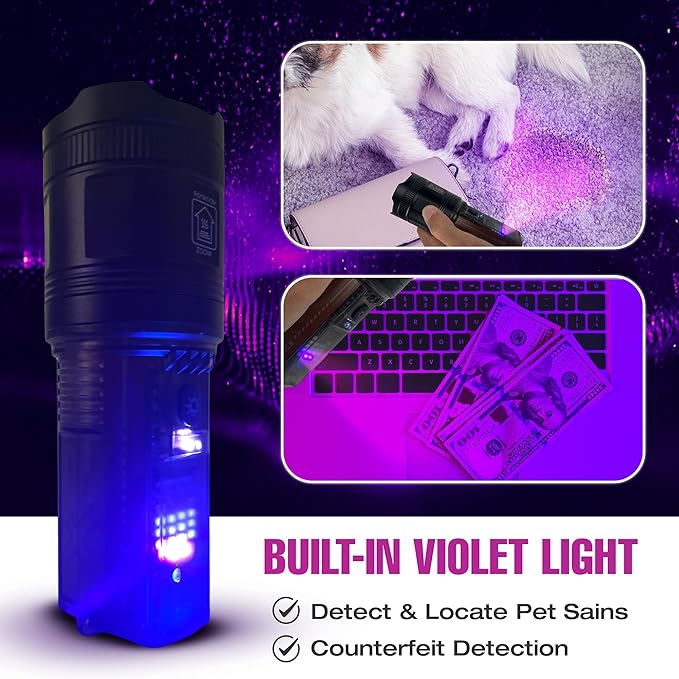 Solar Camping Flashlight, Ideal for Camping Essentials. This Midsize Heavy Duty Survival Gear Flash Light Includes A Black Light/UV Light & More. Essentials for Camping Gear & Hunting Gear