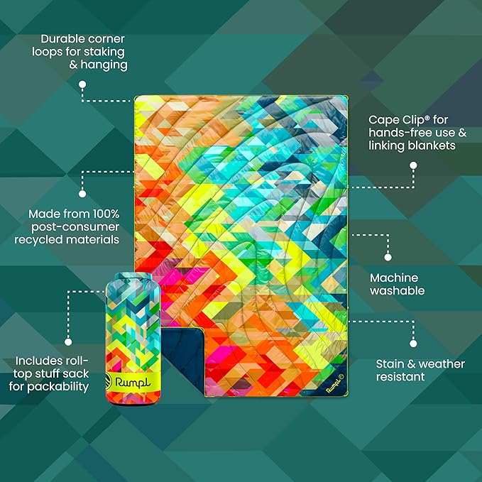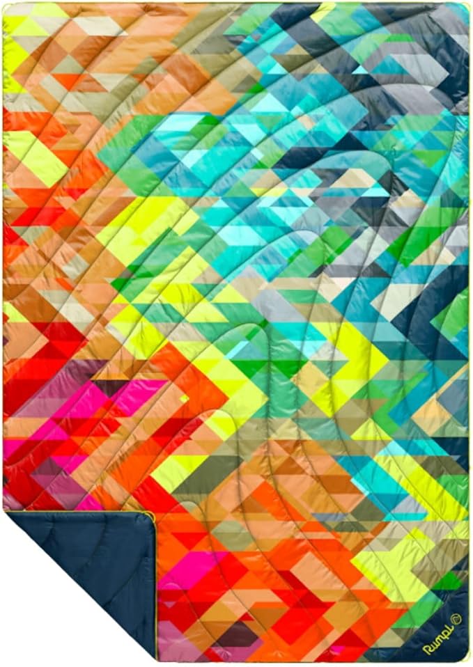 Rumpl Original Puffy Blanket - Warm Puffy Camping Blanket, 100% Recycled Polyester Insulation, Lightweight, Packable, Water-Resistant, Outdoor Puffer Blanket, 52"x75", V2, Geo Fresh