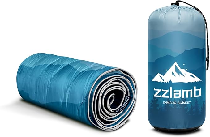 zzlamb Camping Blanket, Lightweight Cloak Puffy Down Alternative Travel Blanket, Portable & Windproof Warm Outdoor Blanket, Cozy Quilt Plane Car Picnic Hammock Beach Backpacking, 52x75in