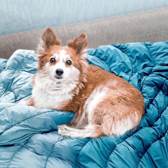 - Lightweight & Portable: Your purchase includes a travel blanket and a stuff bag, which weighs just 2lbs. The warm blanket measures 52x75 inches. The bottom of the storage bag made of mesh makes you pack the blanket easily. A handle on the side of the stuff sack allows you to take the puffy blanket to everywhere