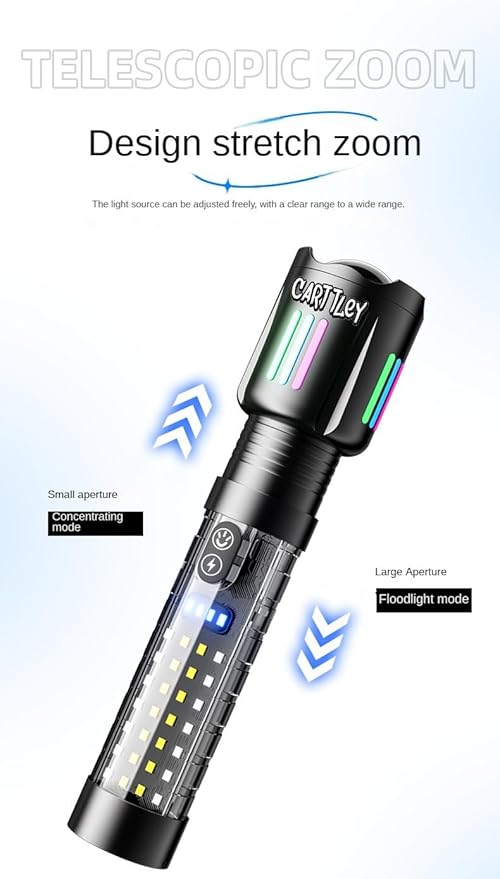 - 【WITH ZOOMABLE ADJUSTABLE & 6 LIGHTING MODES】Compared to the traditional Flashlights with only 5 modes (high/medium/low/sos/double flash), our powerful Flashlights with 2000,000 lumens have a new super bright mode to meet the brightest lighting needs. In addition, we have set up a separate function key to the Super Bright Flashlight to make the sos and double flash functions more convenient to use.