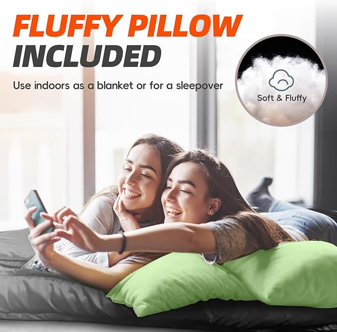 - EASY TO PACK & CARRY: Our queen size sleeping bag comes with a compression sack with straps, can be packed down into an ultra compact bag within one minute. No need to fold or roll it. Just stuff it into the sturdy carrying bag. Convenient storage and easy carry for outdoor use like car camping, or indoor use like sleep over