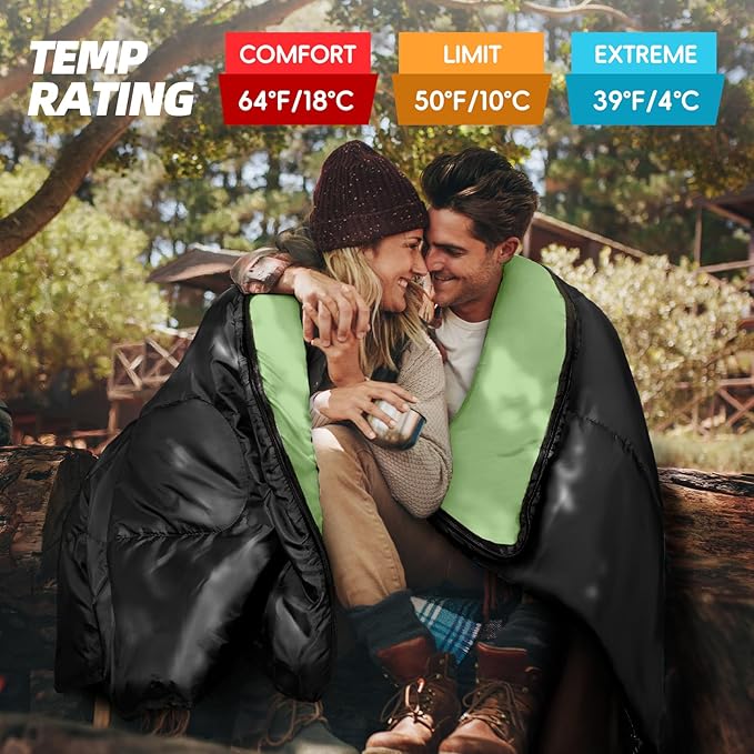 - IDEAL FOR COLD WEATHER: Our double sleeping bags are designed to give you a good night's sleep. Temperature rated from 39°F to 64°F (optimal comfort temperature is 64°F). Perfect for warm and cool weather in 4 seasons and cozy in any position. Really versatile warm sleeping bag for the outdoors and indoors
