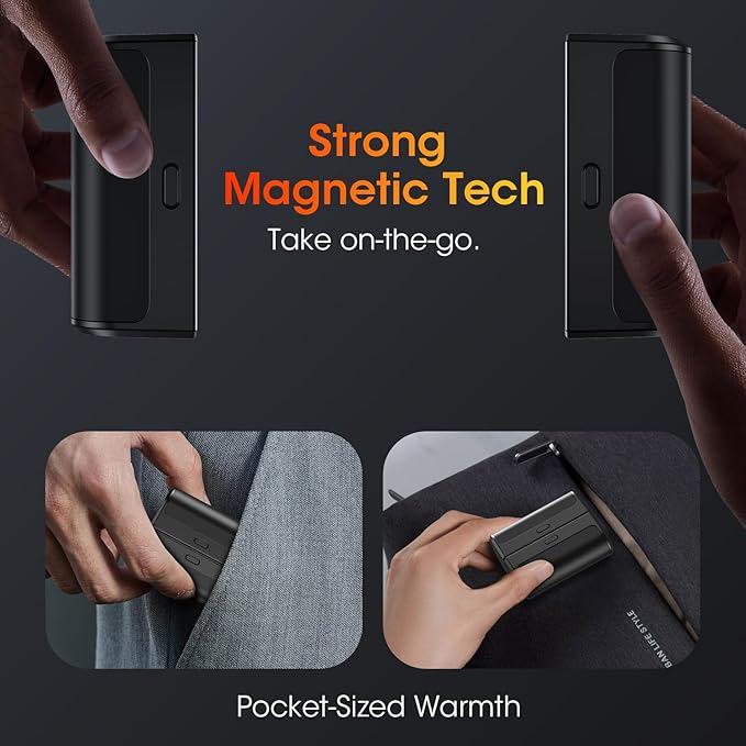 - 【Safety Assurance & High-Performance】2024 upgraded version magnetic hand warmers adopting premium AI intelligent chip set to control heat levels and made of high-tech aviation-grade aluminum and ABS materials which are certificated with UL,FCC,CE as well as enhanced multiple protection technologies to preventing overheating and short circuits. It is flame-proof,explosion-proof and no radiation.Made to last,making you and your loved ones safer and warmer.