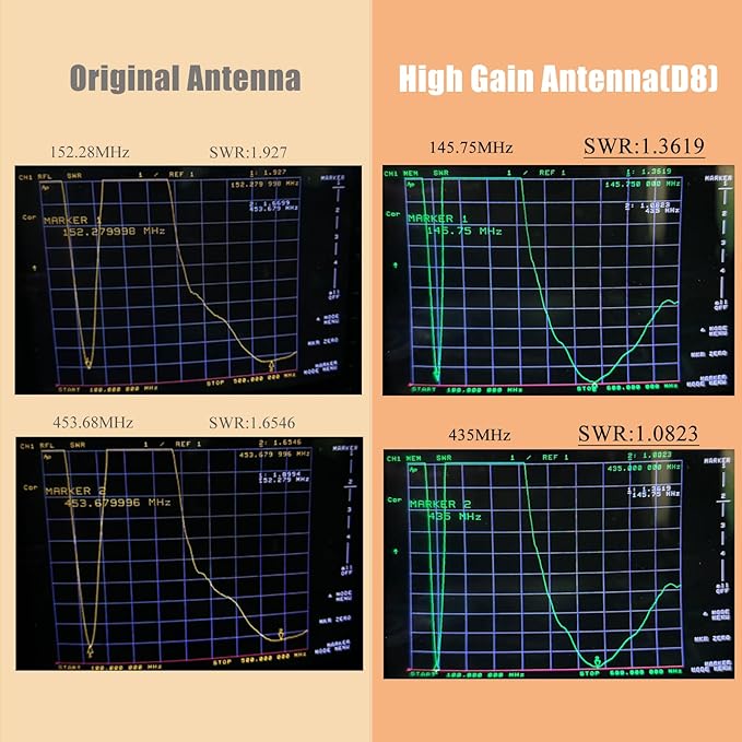 - Walkie Talkies Long Range with 8.27inch High Gain Antenna, Dual Display Dual Standby, Dual Band:(VHF)144-148/(UHF)420-450Mhz, 128 memory channels.