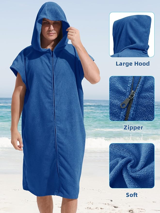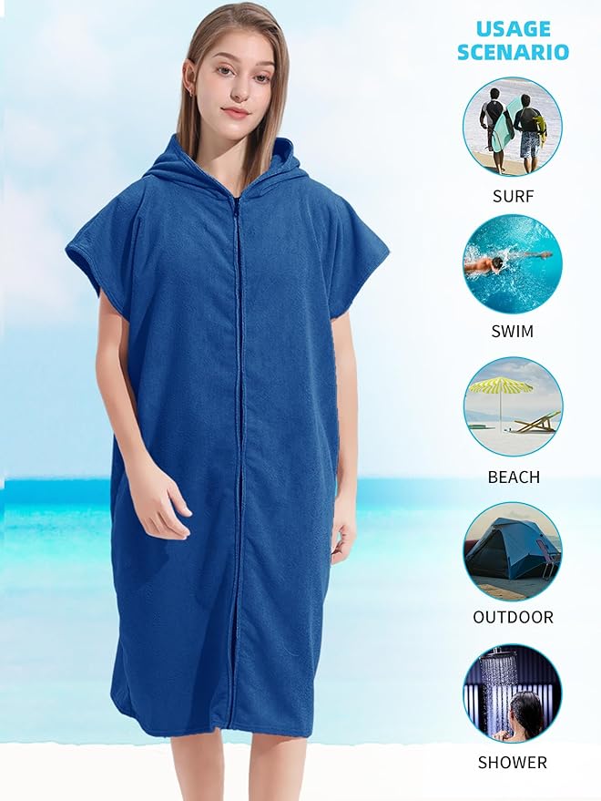 - Zip & Pockets:Our hooded Changing Towel Swim Robe feature a high-quality zipper for easy on and off . The wearable towel is great for drying off after a dip in the water. The oversized fit means you can get changed under the Beach Dresses, the hood provides shade from the sun and there’s two pocket to store snacks, drinks, or sunscreen.