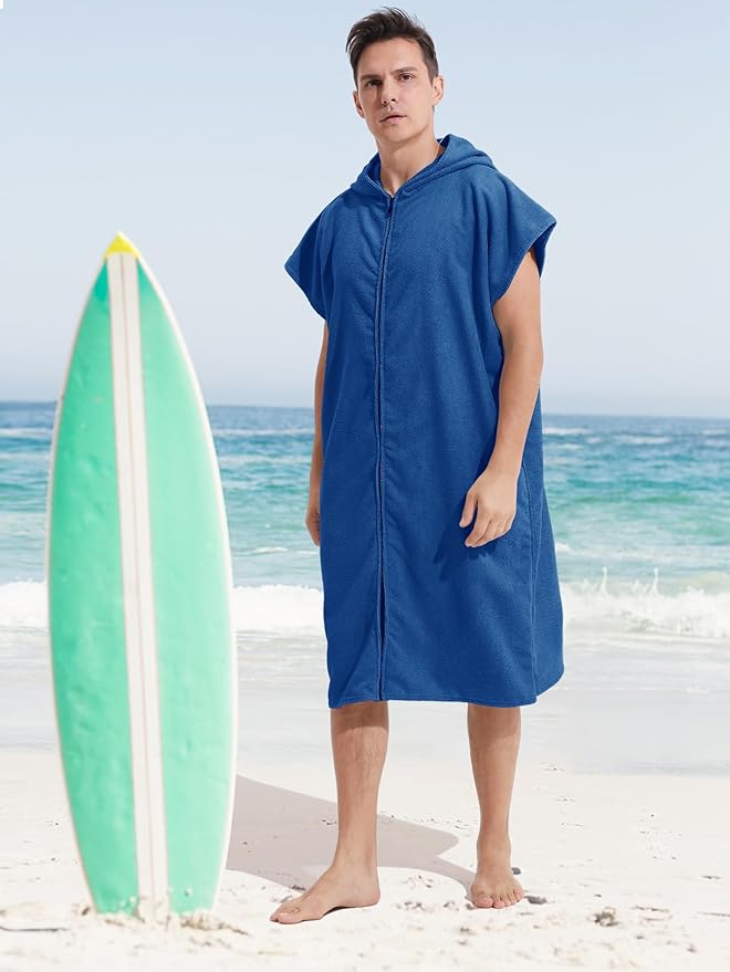 Surf Poncho Hooded Changing Towel Swim Robe with Zipper Plus Size Terry Cloth Swim Cover Up for Adults Men Women Towel Poncho Hoodie Surfing Accessories(Black) (Dark Blue)