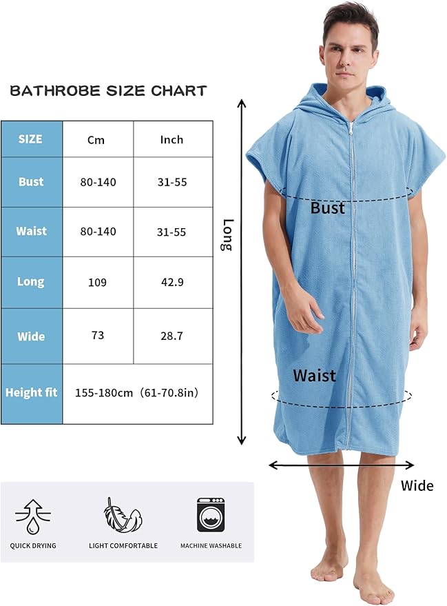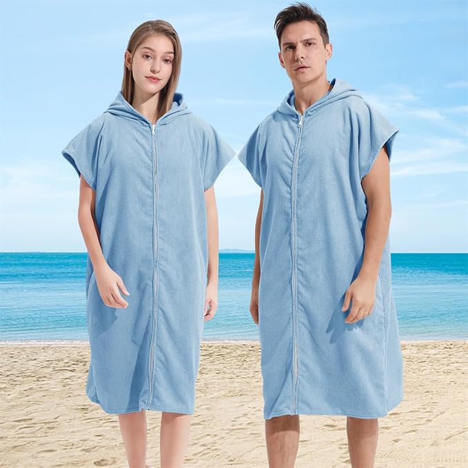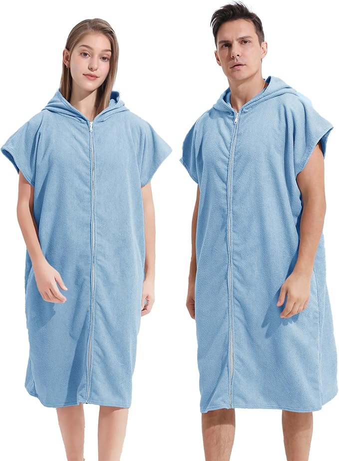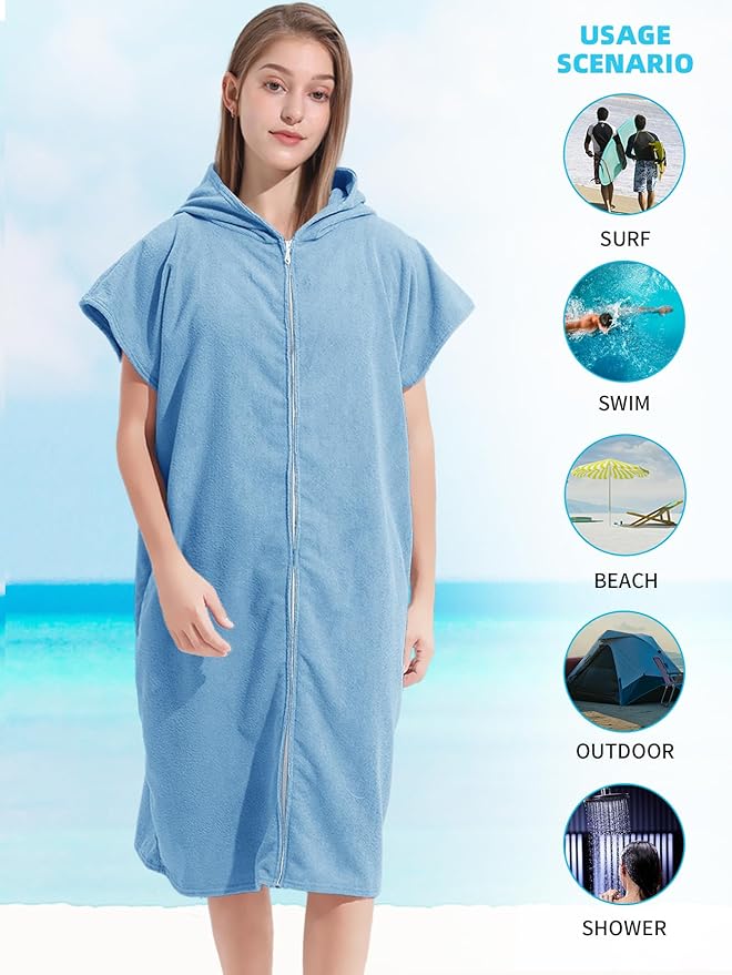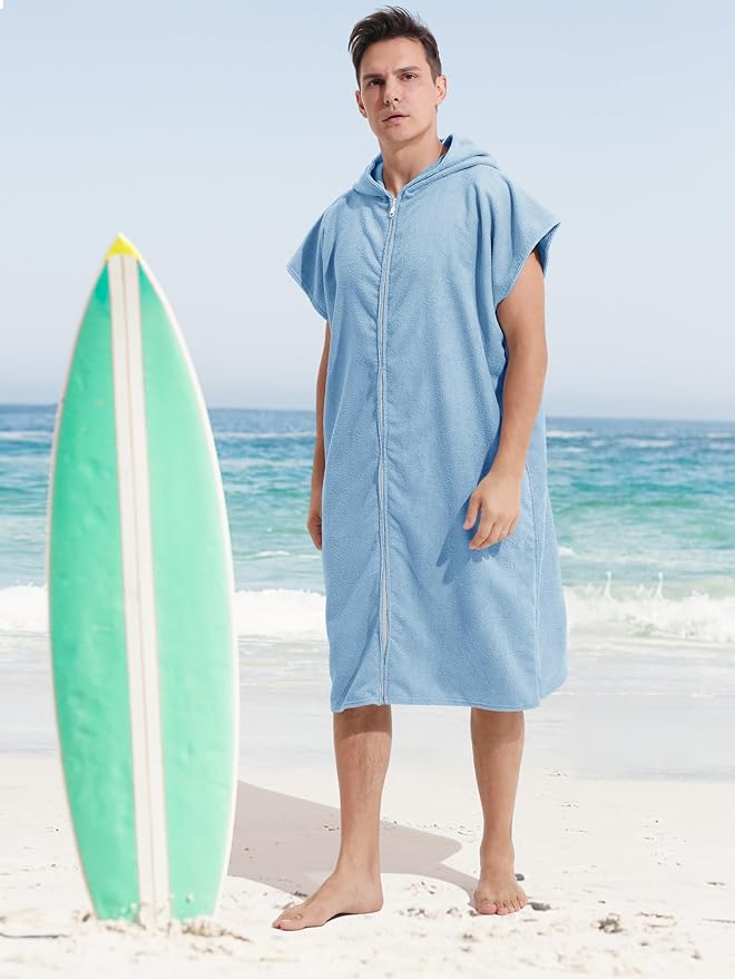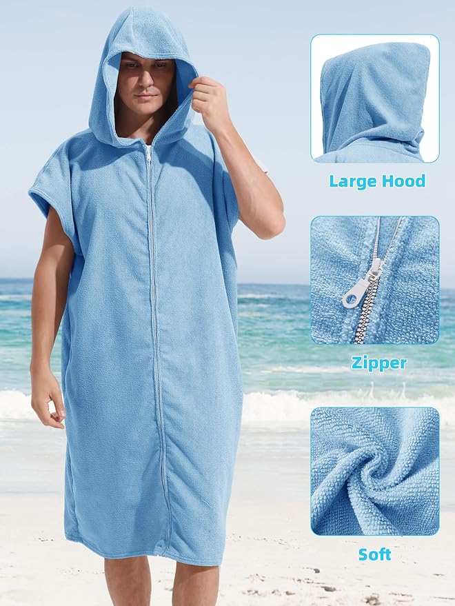 Surf Poncho Hooded Changing Towel Swim Robe with Zipper Plus Size Terry Cloth Swim Cover Up for Adults Men Women Towel Poncho Hoodie Surfing Accessories