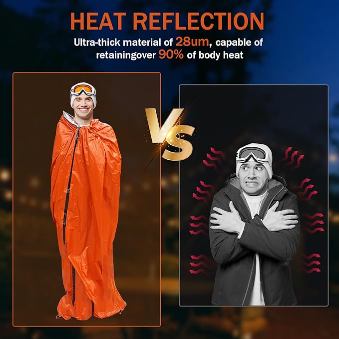 - Full Body Wrap: survival sleeping bag measures 84 inches by 36 inches, providing ample space to ensure that the whole body can be comfortably wrapped in an emergency.