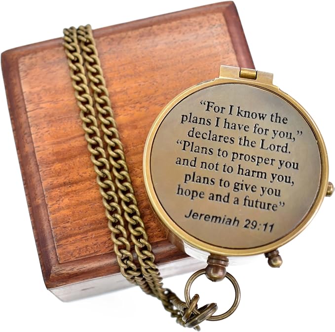Handmade Portable Antique Brass Chain Compass Engraved with Wooden Box Men's & Women's Hiking Camping Use and Pirate Accessories