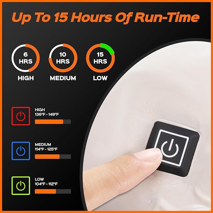 - CUSTOMISABLE 3-STAGE HEAT FOR YOUR COMFORT - With three adjustable heat levels, you can choose the temperature that suits you best. The fast-heating inner core provides efficient, long-lasting heat, while the soft, plush outer layer provides cosy comfort.