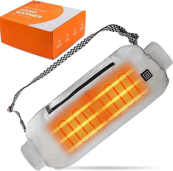 - 10000mAh RECHARGEABLE POWER BANK LONG LASTING HEATING - The electric heated hand warmer pouch is powered by 10000mAh large capacity rechargeable power supply, up to 15H continuous working time, so your whole hands in can be warm all day long. The rechargeable power bank can also charge your other electronic devices separately. Our heated hand warmer pouch solves your multiple daily needs.