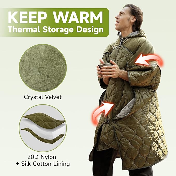 - 【Insulated Poncho for Warmth】When unfolded, this snug poncho features soft crystal fleece for added warmth around your shoulders. The adjustable hood ensures a personalized fit, and sleeve buckles keep it securely closed, providing optimal comfort and insulation for your outdoor adventures.