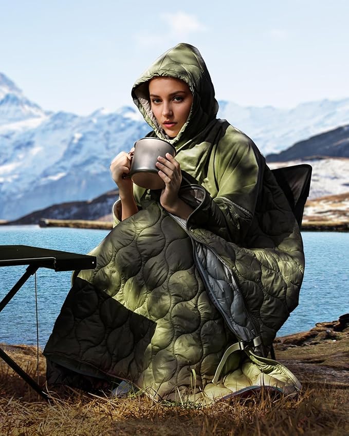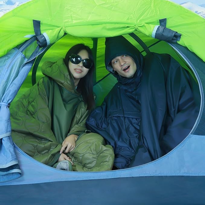 Sleeping Bag for Adult, Wearable Blanket Insulated Poncho Hooded, Sleepingbag Quilt for Winter Camping Hiking Sports