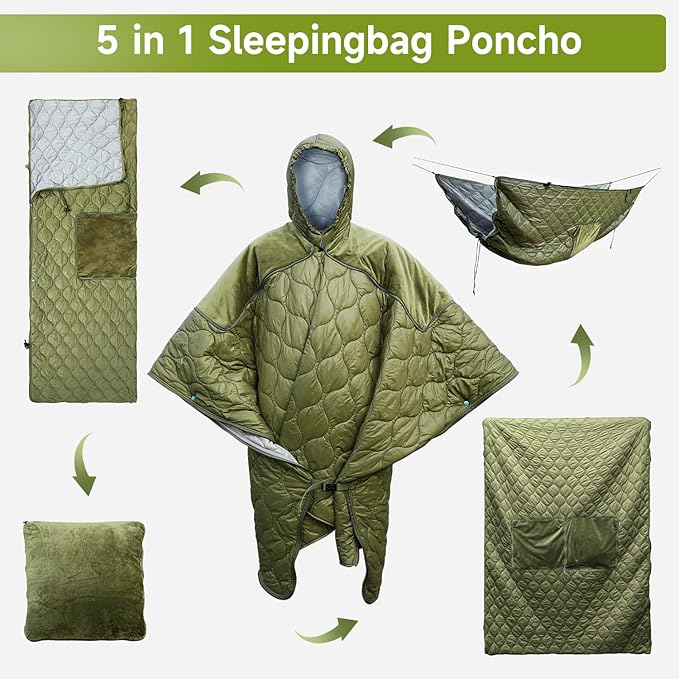 - 【Versatile Sleeping Bag】Effortlessly convert it into a pillow, poncho, quilt, or hammock underquilt to meet all your needs.