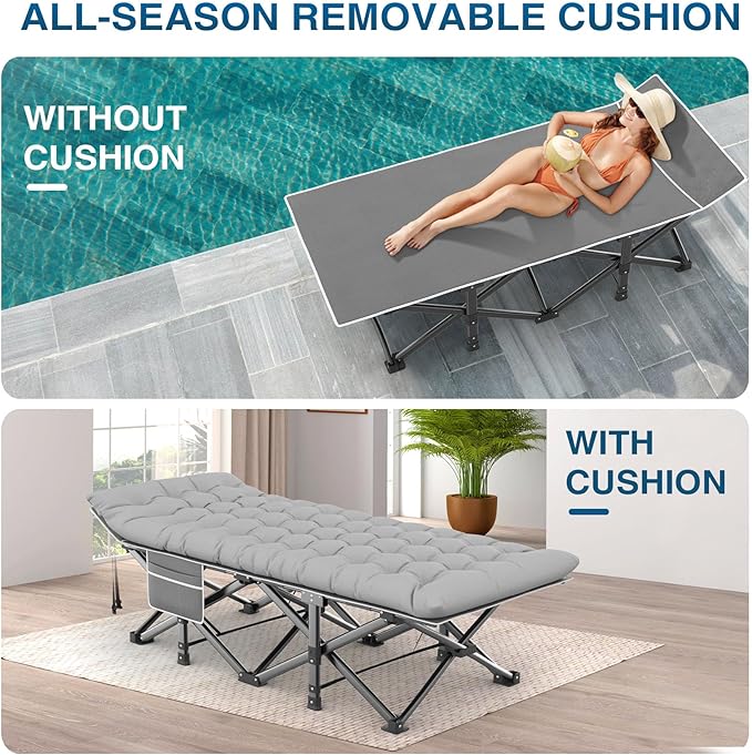- 【Foldable & Space-Saving】Say farewell to cumbersome storage. Our camping cots for adults feature a seamless folding design, transforming into a compact form for hassle-free storage or on-the-go convenience, preserving space without compromise.