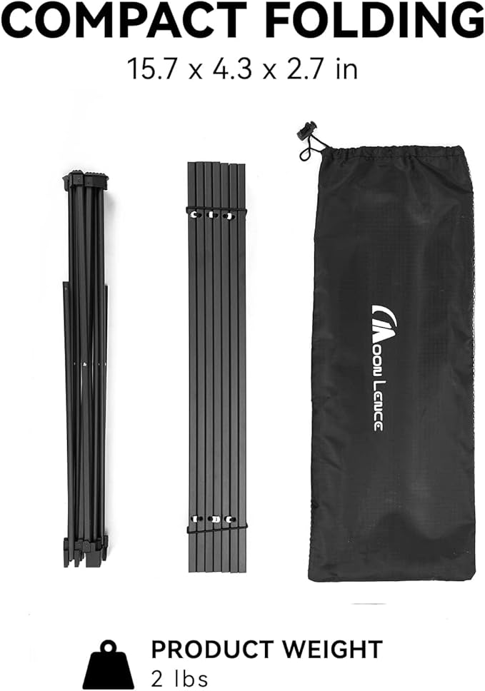- Easy Care: Includes tabletop, frame, and storage bag. Clean with mild detergent and a damp cloth. Avoid strong acids and corrosive cleaners. Store to prevent scratches and avoid prolonged sunlight or dampness. MOON LENCE support is available 24/7