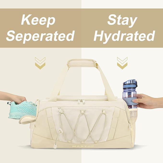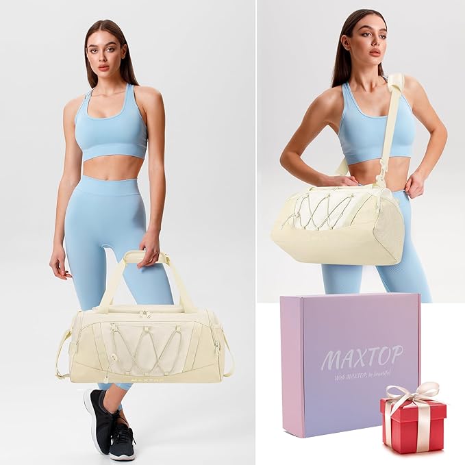 MAXTOP Gym Bag for Women Men Travel Duffle Bag Large Capacity Carry On Weekender Overnight Bag With Shoe Compartment Gym Tote Dry Wet Separation Duffel Bag for Travel
