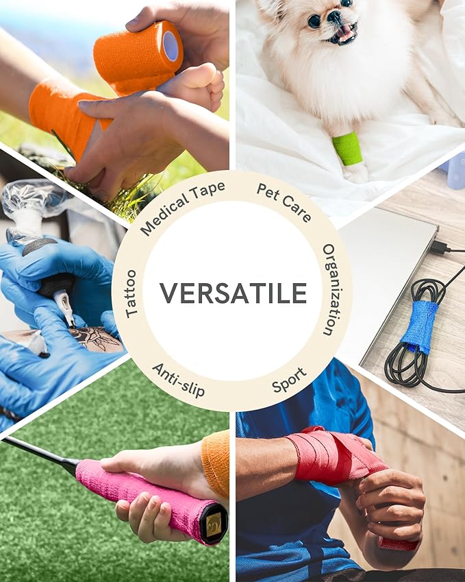 FriCARE Self Adhesive Bandage Wrap, Medical Tape in First Aid Kit, Cohesive Bandages for Wounds Sport Vet, FSA/HSA Eligible, 2 Inches X 5 Yards 6 Rolls, Sporty