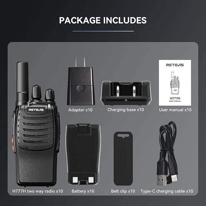 - Type-C charging; rechargeable two way radio includes a standard Type-C charging port; and features a Type-C charging base; enabling users to use the power bank/computer/vehicle to charge the walkie talkie for longer service life