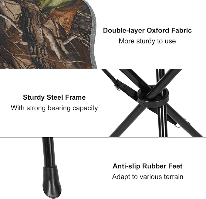 - [More Comfortable] Finished with double layer oxford on the tripod seat surface, more durable and stable, These tripod camp stools for adults 300lbs fit big and tall person to enjoy a comfortable experience.