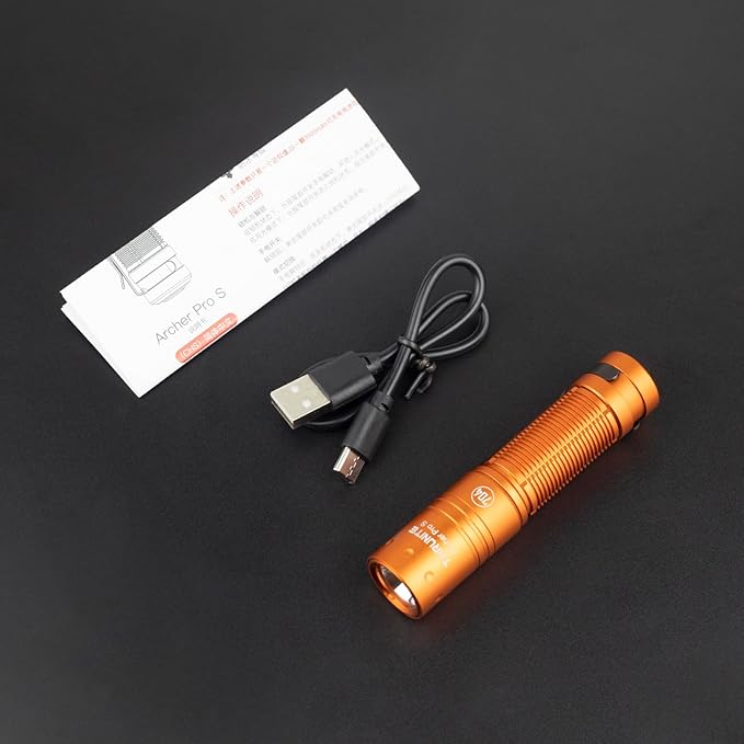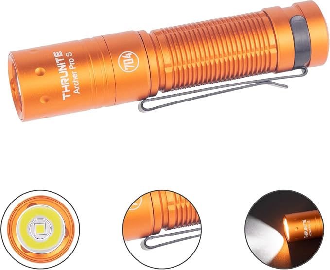 ThruNite Archer Pro S LED EDC Flashlight, Customized Edition with 704 Tactical, 1459 High Lumens Tail Switch, USB C Rechargeable Pocket Penlight for Camping, Outdoor and Indoor - Orange Cool White