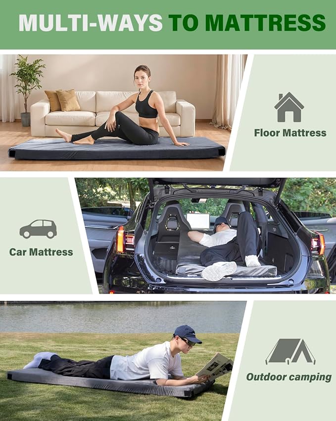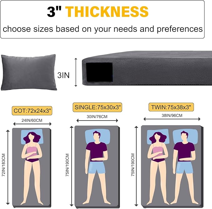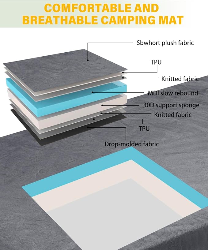 - Memory Foam Camping Mattress:The 3-inch thick memory foam mattress pad consists of 2 inches of high-density support foam and 1 inch of memory foam.Provides balanced support and comfort,with the high-density foam offering stability and the memory foam delivering pressure relief