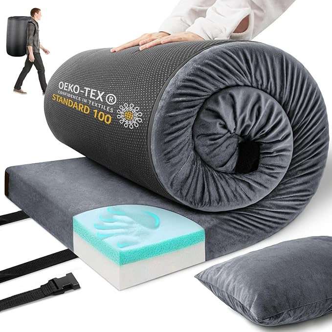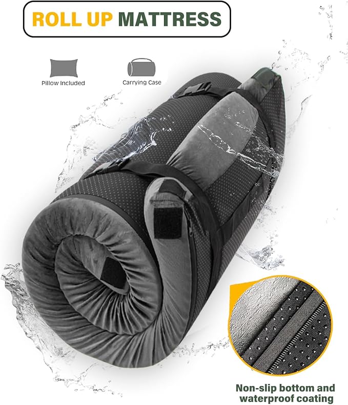 Memory Foam Camping Mattress Sleeping Pad,3 Inch Waterproof Camping Mat to Portable Roll Up Mattress for Floor,Car,Tent Travel,Cot,Soft Thick Sleeping Mat for Kids Adults Camping Sleepover