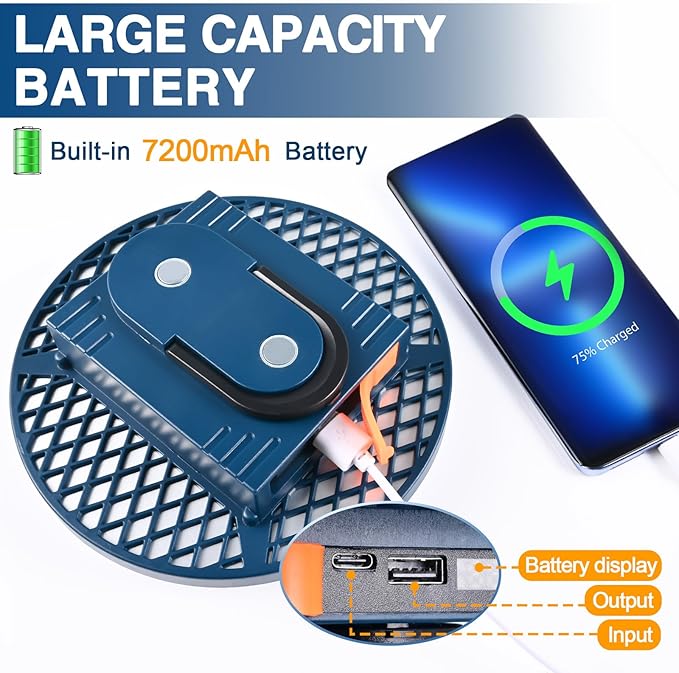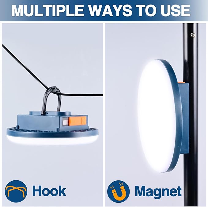 - HIGH BATTERY CAPACITY: Camping light with 7200mAh battery provides longer usage time for long outdoor trips. With hours of light on a single charge, this rechargeable tent light is perfect for camping, emergencies or extended power outages.