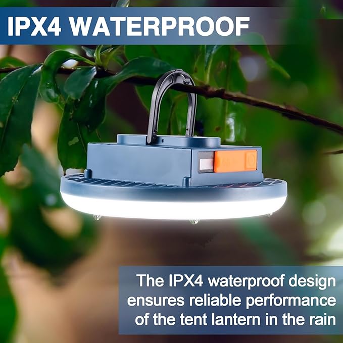 - IPX4 WATERPROOF: The IPX4 waterproof design ensures reliable performance of the tent lantern in the rain. Built to withstand wet conditions, this camp light is a reliable companion for your wet weather adventures!