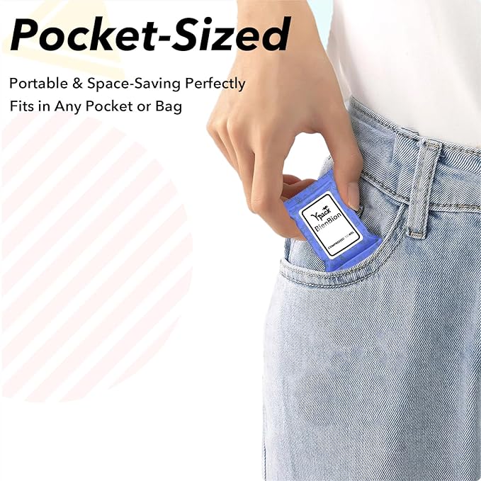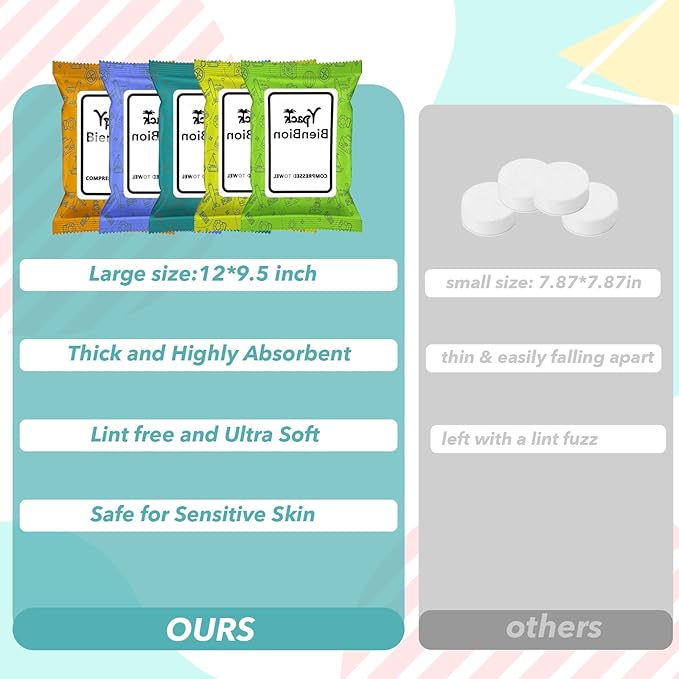 - Portable mini travel essentials:Our compressed towel tablets are very small and can be put into a pocket, wallet,handbag,backpack,suitcase or car;Independent packaging is more reliable;Refuse to share personal belongings with others and travel with peace of mind