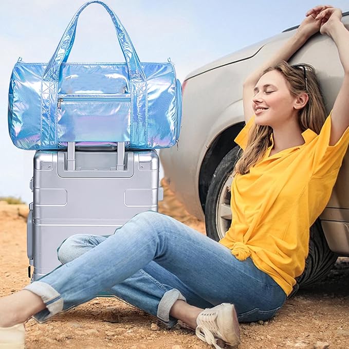 Gym Bag Sports Duffle Bag with Wet Pocket Weekender Overnight Bag with Waterproof Shoe Pouch and Air Hole for Girls Kids Women Travel Foldable Bag