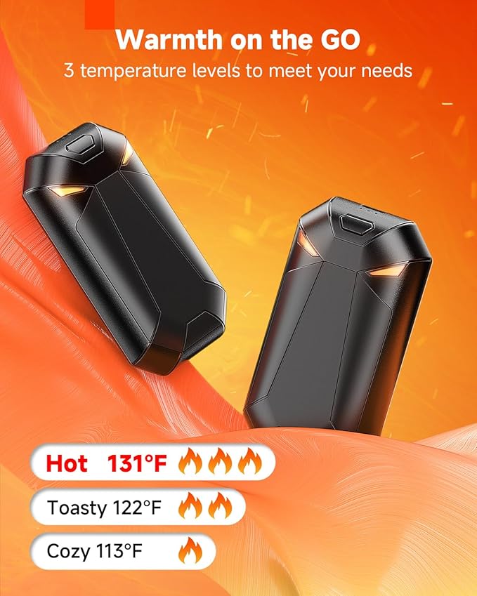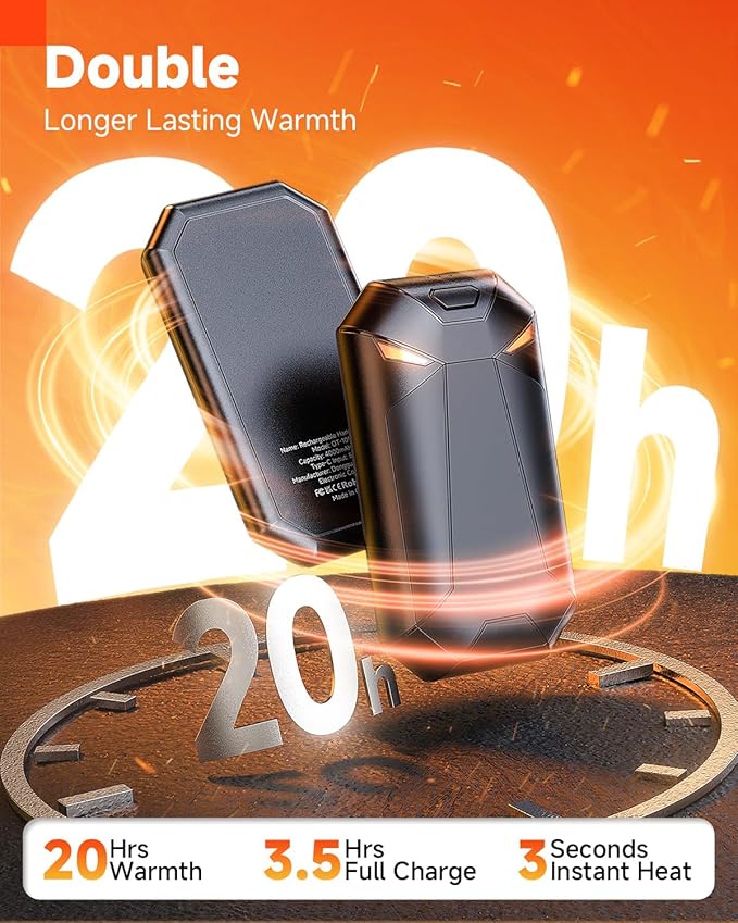 - 【Instant Heating, Long-Lasting】- Heats up within 3 seconds of turning on, and can last for 10-20 hours depending on the setting mode you choose, perfect for all-day use. Just charge this hand warmer for 3-4 hours, and it will serve you well.