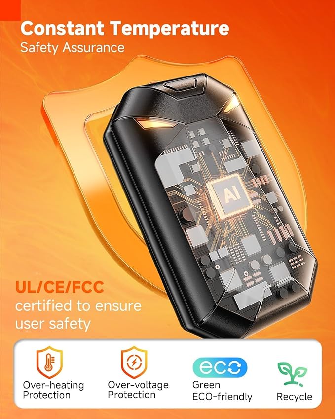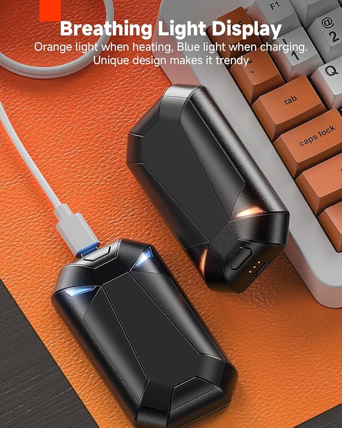 - 【Breathing Light Effect】- Bright orange when heating, bright blue when charging, double-click the button to display the power level (35%/70%/100%). Cool appearance, suitable for gifts.