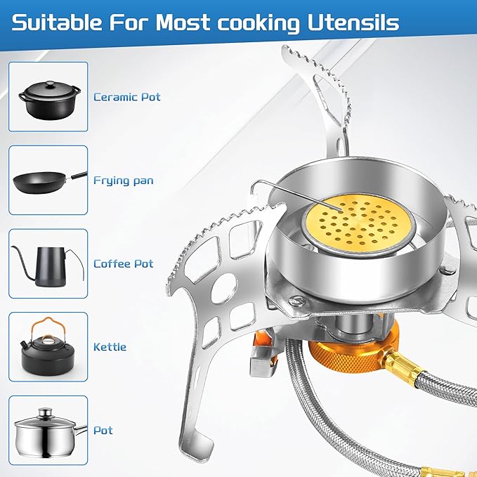 - Powerful & Windproof Design: With a robust 3900W output, this camping stove boils water and cooks food quickly. Its windproof design ensures high combustion efficiency and concentrated flames, even in strong winds—no extra wind deflectors needed!