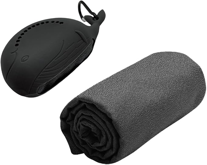 FANCAME Quick Dry Towel with Whale Silicone Sleeve Microfiber Sports Travel Towel Soft Breathable Cooling Towel Absorbent Compact Beach Towels,Suitable for Gym,Camping and Yoga (Grey, 15‘’x 15")