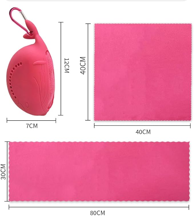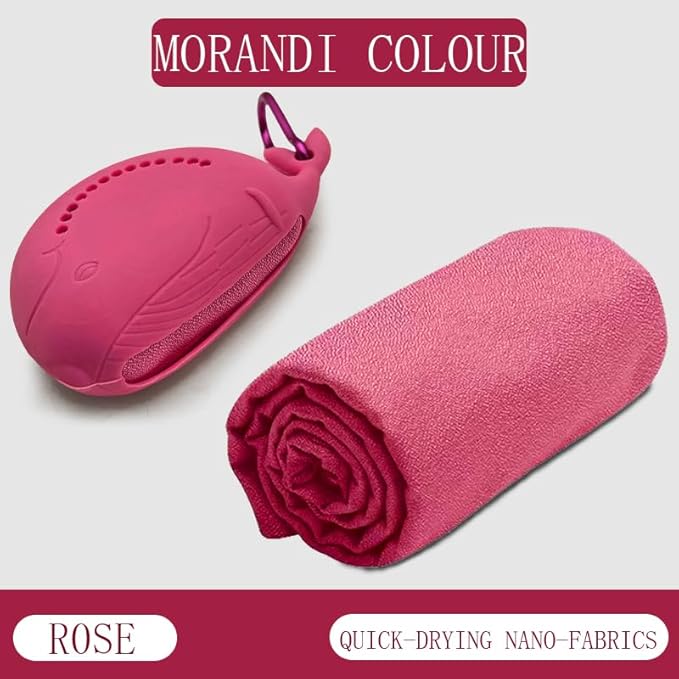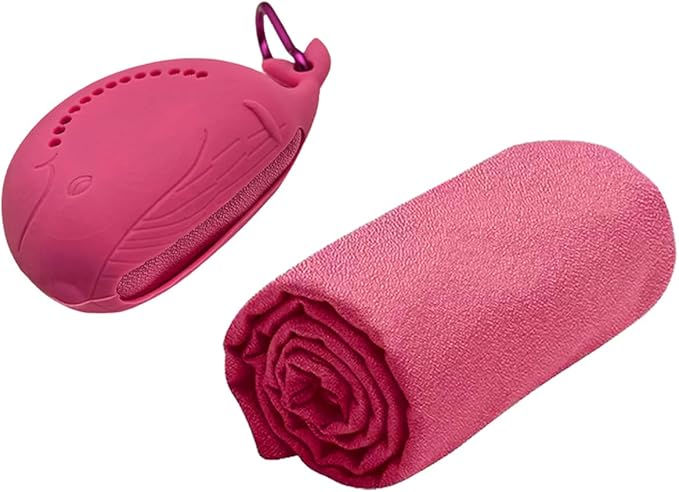 FANCAME Quick Dry Towel with Whale Silicone Sleeve Microfiber Sports Travel Towel Soft Breathable Cooling Towel Absorbent Compact Beach Towels,Suitable for Gym,Camping and Yoga (Rose, 15‘’x 15")