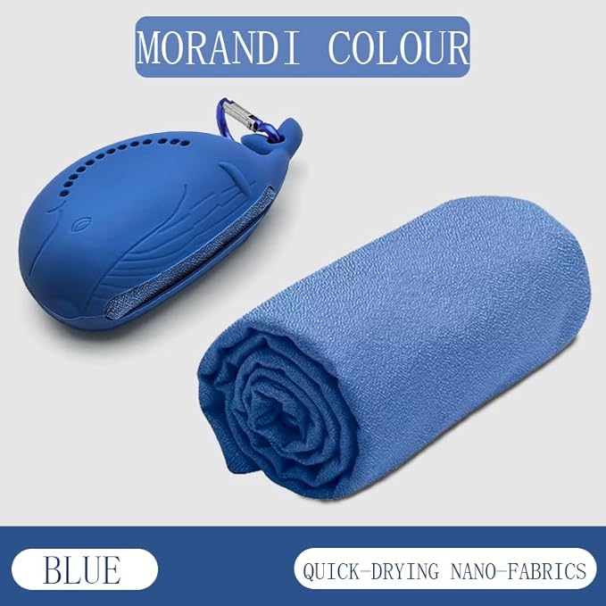 FANCAME Quick Dry Towel with Whale Silicone Sleeve Microfiber Sports Travel Towel Soft Breathable Cooling Towel Absorbent Compact Beach Towels,Suitable for Gym,Camping and Yoga (Blue, 11‘’x 31‘’)
