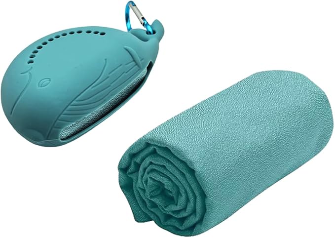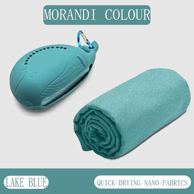 FANCAME Quick Dry Towel with Whale Silicone Sleeve Microfiber Sports Travel Towel Soft Breathable Cooling Towel Absorbent Compact Beach Towels,Suitable for Gym,Camping and Yoga (Lake Blue, 11‘’x 31‘’)