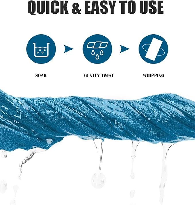 - 【Multi Purpose Towel】This portable travel cooling towel is suitable for a wide range of scenarios, ideal for wiping away sweat whether at the beach, pool, gym, water park or picnic, yoga, camping, hiking, rock climbing. Instantly cools down and absorbs sweat when you are sweating profusely, allowing you to experience a cool feeling at any time, get rid of grease, durable and easy to wash.
