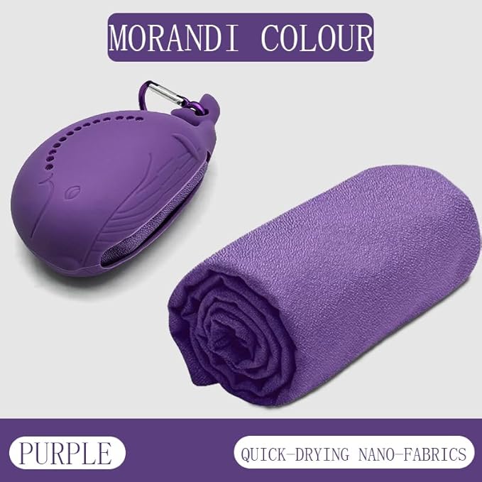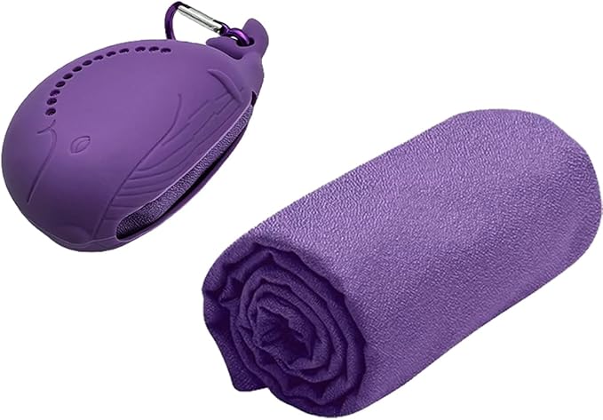 FANCAME Quick Dry Towel with Whale Silicone Sleeve Microfiber Sports Travel Towel Soft Breathable Cooling Towel Absorbent Compact Beach Towels,Suitable for Gym,Camping and Yoga (Purple, 11‘’x 31‘’)