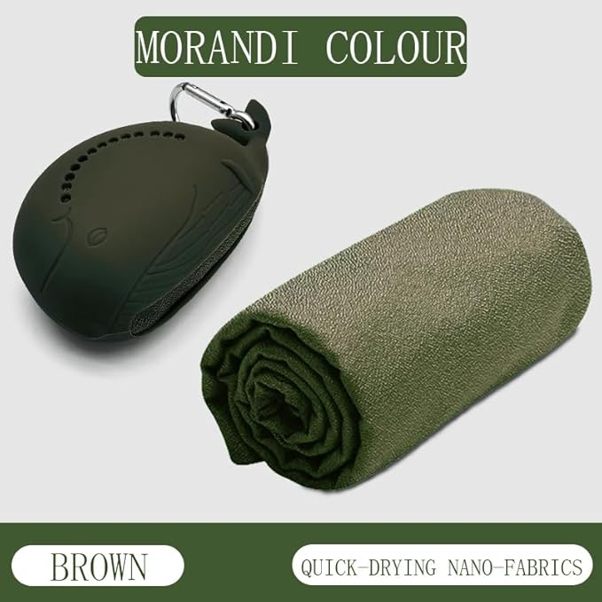 FANCAME Quick Dry Towel with Whale Silicone Sleeve Microfiber Sports Travel Towel Soft Breathable Cooling Towel Absorbent Compact Beach Towels,Suitable for Gym,Camping and Yoga (Brown, 15‘’x 15")