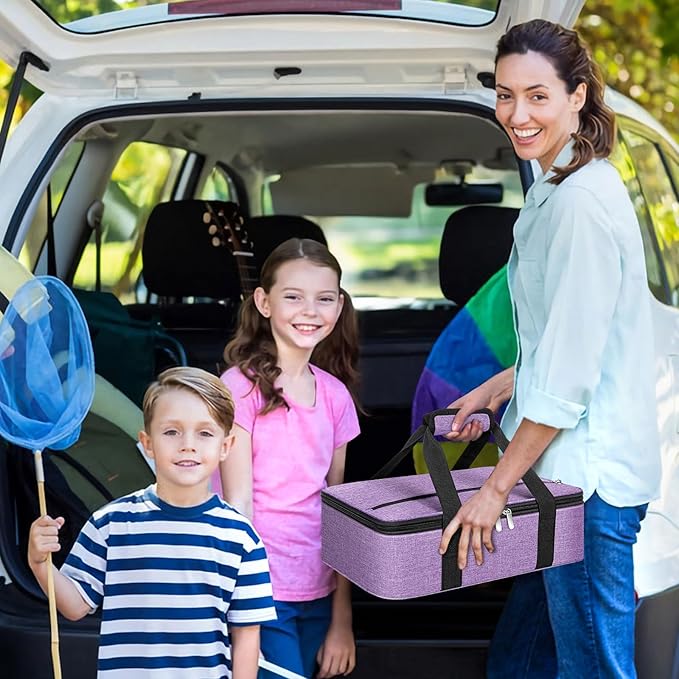Insulated Casserole Carrier, Portable Casserole Carrier for Hot or Cold Food Lunch Tote Warmer or Cooler Bag, Lasagna Lunch Bag for Potluck Parties- Fits 9" x 13" Baking Dish-Purple