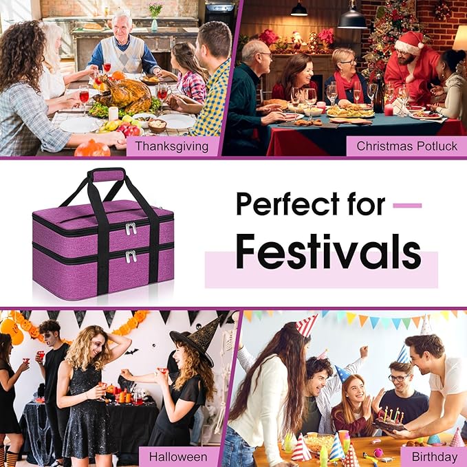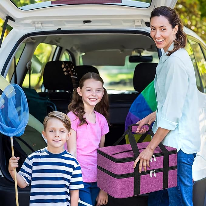 Double Insulated Casserole Carrier, Portable Casserole Carrier for Hot or Cold Food Lunch Tote Warmer or Cooler Bag, Lasagna Lunch Bag for Potluck Parties- Fits 9" x 13" Baking Dish-Rose Purple