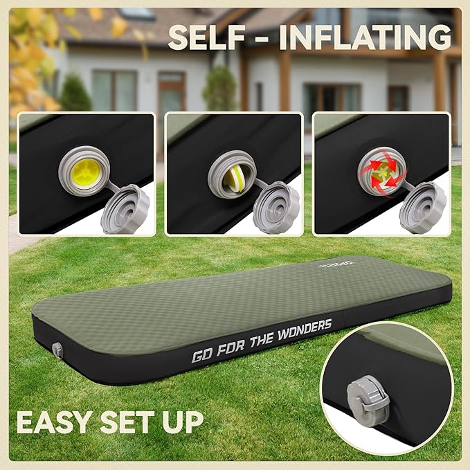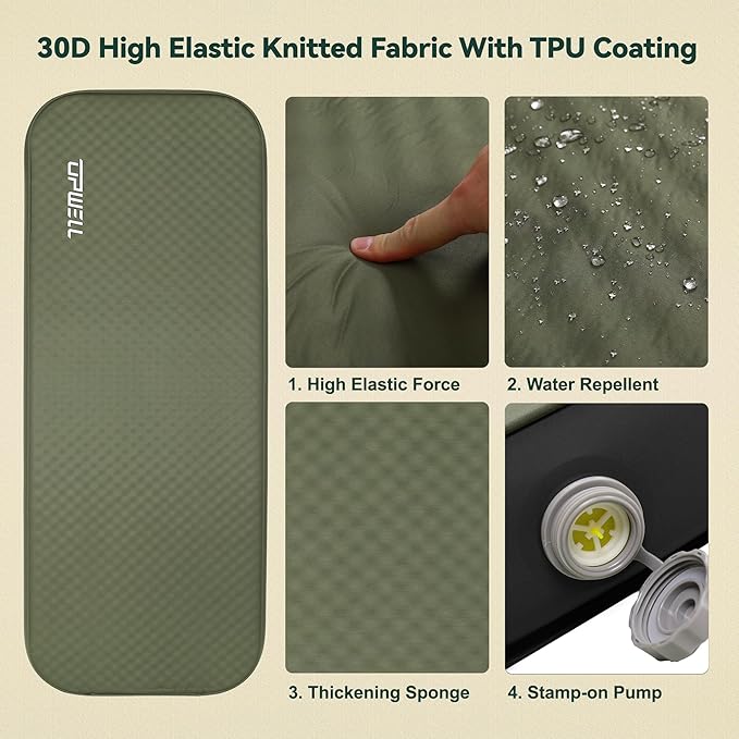 UPWELL Self Inflating Sleeping Pad 4.5" Thickness Camping Mattress with Solid Foam Single Sleeping Mat Portable Fast Inflation for Outdoor Mat Portable Roll Up Bed Green&Black
