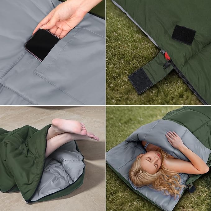 Envelope Sleeping Bag 3 Season Warm Weather Portable Compact Sleeping Bags for Adult Kids with Carry Bag for Camping Hiking Backpacking and Outdoors 59℉-77℉