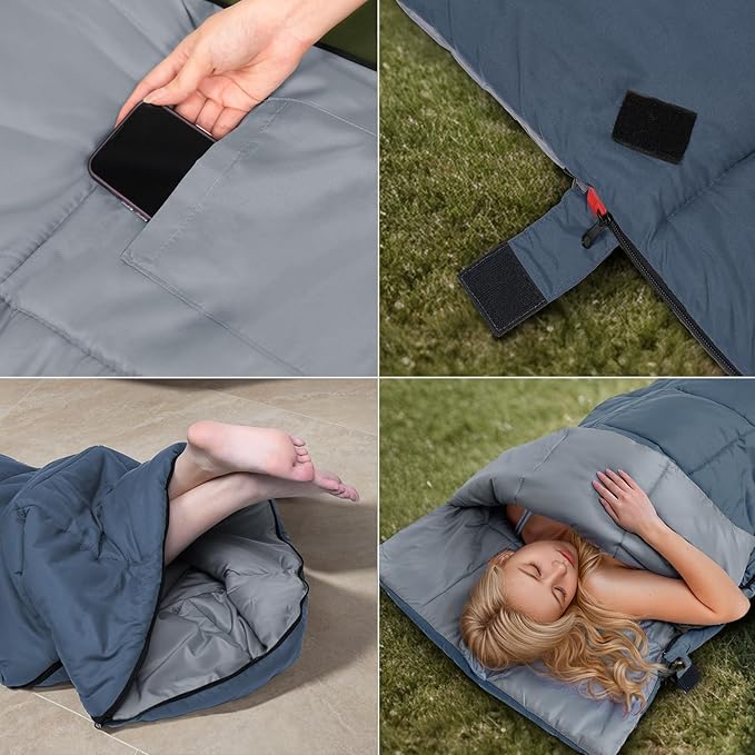 Envelope Sleeping Bag 3 Season Warm Weather Portable Compact Sleeping Bags for Adult Kids with Carry Bag for Camping Hiking Backpacking and Outdoors 59℉-77℉